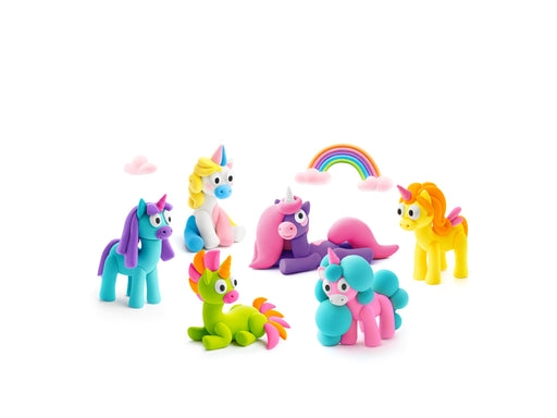Breng kleur en fantasie in het spel van je kind met de Hey Clay 6 Blikken Rainbow Unicorns. Deze set biedt alles wat je kleintje nodig heeft om pra...