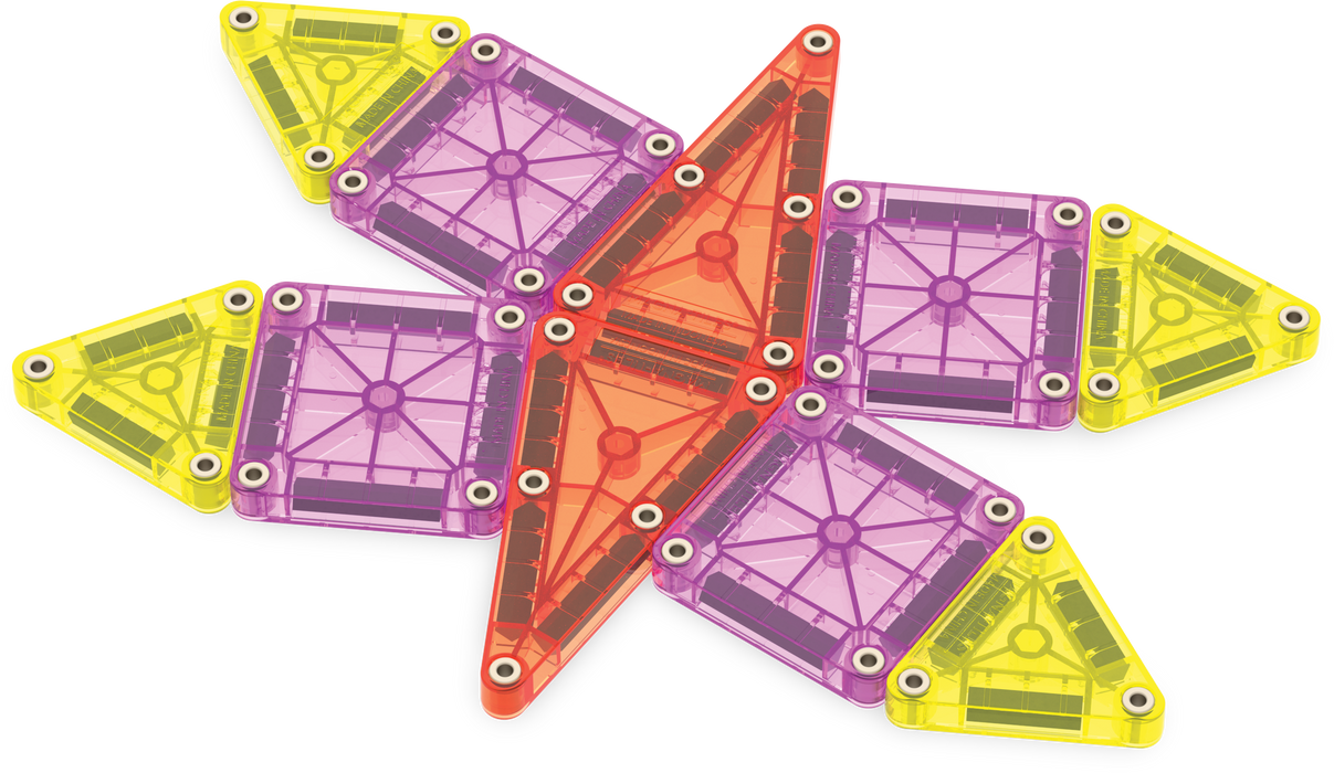 Alle MAGNA-TILES onderdelen zijn ontworpen om talloze uren speelplezier te weerstaan. Onze kenmerkende rasterstructuur voorkomt barsten, terwijl de bevestigingsnieten de magneten veilig op hun plaats houden.